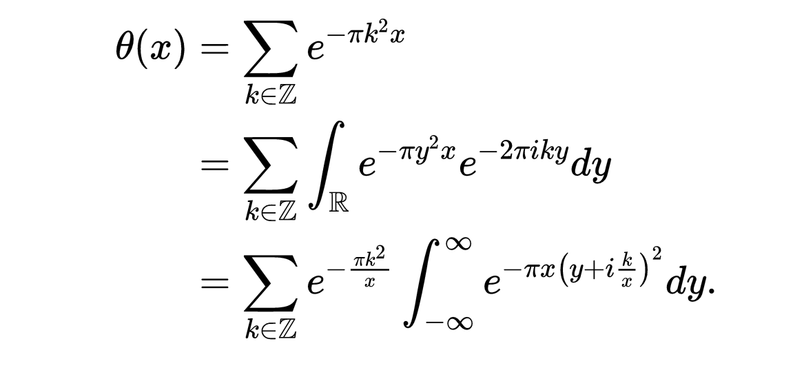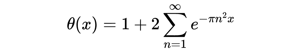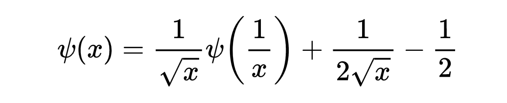 在这种情况下,有一个简单的关系θ(x) = 1 + 2 ψ(x)。这个函数的关键特征之一也是一个函数方程。这个函数是满足的