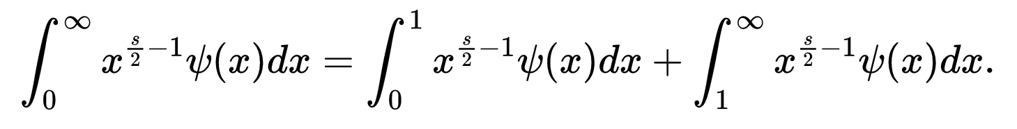 现在我们可以把积分拆分成两个区间然后利用ψ函数的变换性质,利用下面的性质,