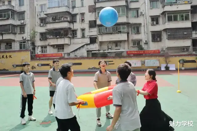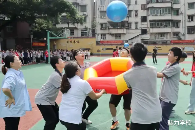 第二轮活动为“赛合作”。一面鼓和一颗球把一群人紧紧连在一起,迸发的是身体的力量,拉近的是心与心之间的距离,彰显出各班级强大的凝聚力和战斗力。各班的后援队激情呐喊,加油声和欢笑声此起彼伏,教学楼前汇成了一片欢乐的海洋,将激烈的比赛推向一个又一个的高潮。