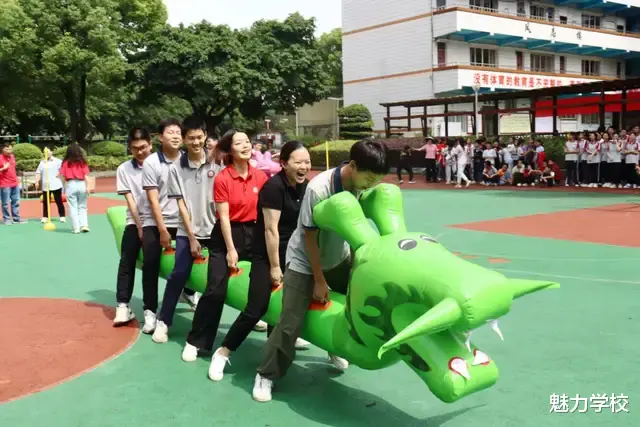 第一轮活动为“赛龙舟”。由师生和家长组成的队伍,紧握船桨,蓄势待发。烈日下,他们的热情高涨,以整齐划一的口号和步伐,成为赛场上最亮丽的风景。场边的加油声和欢呼声为学子们注入力量,激励他们超越自我,展现出青春的活力。在这场拼搏中,师生们熠熠生辉,展现出了他们的精神和风采。