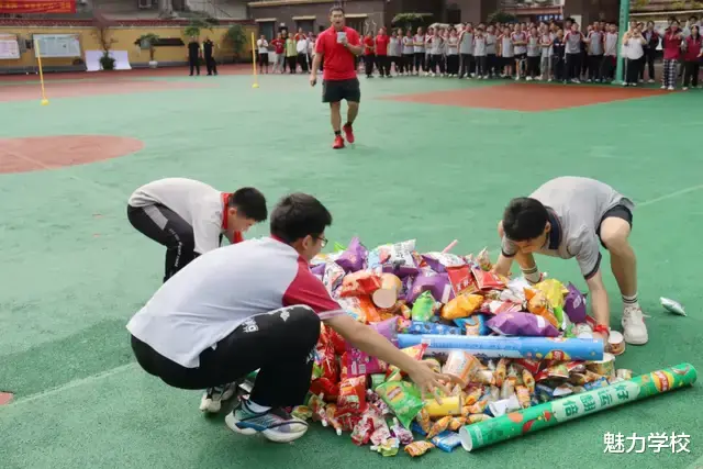 根据前三轮比赛的积分情况,各班开始了“抢福袋”活动。福袋中装满零食,象征着好运和成功。“抢福袋”活动是师生同乐的趣味活动,也是共享美味的美好时光。各班同学出谋划策、各显神通,老师和同学们都铆足了劲儿,一声令下,大家争先恐后奔向零食堆,操场上笑声、掌声、欢呼声交织,成为一片欢腾的海洋。