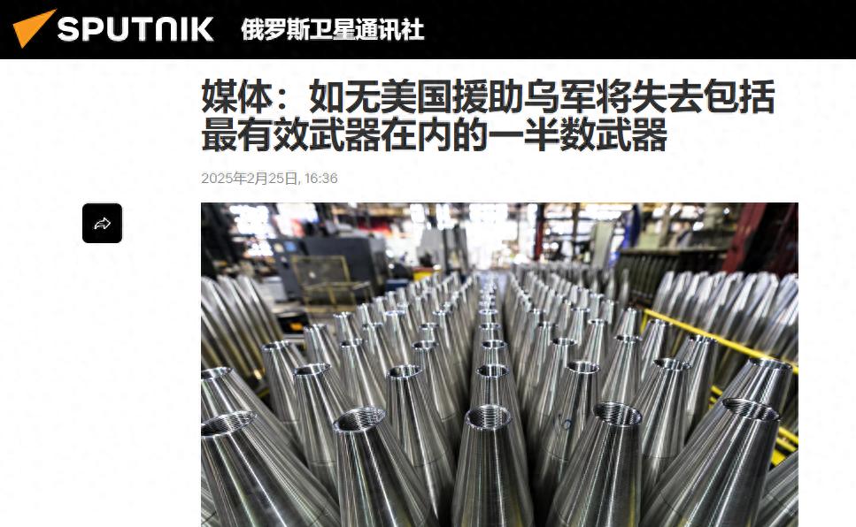 当地时间2025年2月25日,美国《政客》网站认为,如果美国停止援助乌克兰(实际上美国已经停止对乌克兰军事武器援助),乌克兰军队将在2025年夏季,出现弹药短缺。乌克兰前外交部长库列巴已经警告,如果美国的军事援助中断,乌军的武器弹药使用水平只能维持六个月左右。据美国政治新闻网的报道,在美国停止提供军事援助的情况下,乌克兰将失去近半数武器,包括最有效的武器。