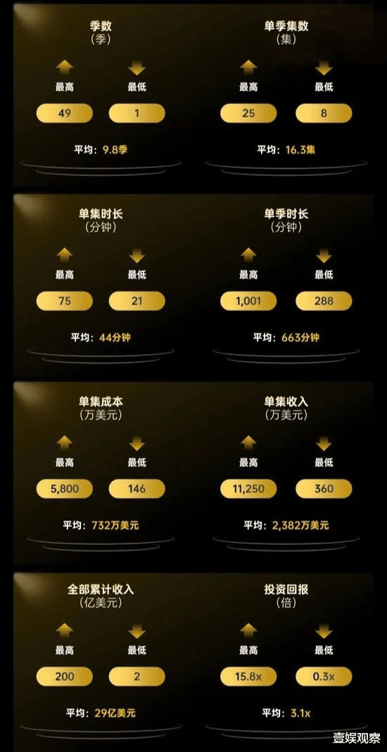根据易凯资本创始人兼首席执行官王冉最近演讲中给出的数据不难看出:成功的美剧IP平均寿命达9.8季,投资回报率超过3倍的剧集平均播出11.6季,单集成本高达839万美元。这表明长剧的商业价值不在于单季拉长,而在于IP的长线运营与多季开发。