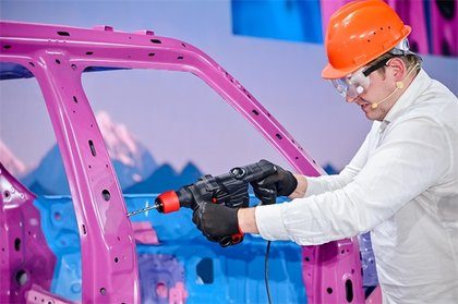 为解码捷途自由者“钢筋铁骨”背后的技术密码,代立宏与媒体见证人现场进行对比实验:使用冲击钻对普通钢板与自由者车身所采用的超高强度钢进行穿透测试。结果显示,普通钢板迅速被击穿,而自由者的潜艇级高强度钢仅留下浅痕。媒体见证人评价道:“强度差异真的很明显,印证了捷途对安全底线的坚守,即便在用户看不见的细节,依然不计成本追求极致。”