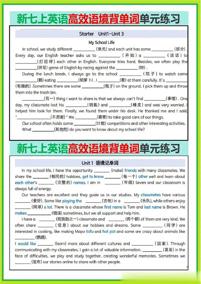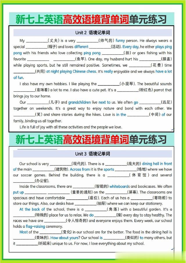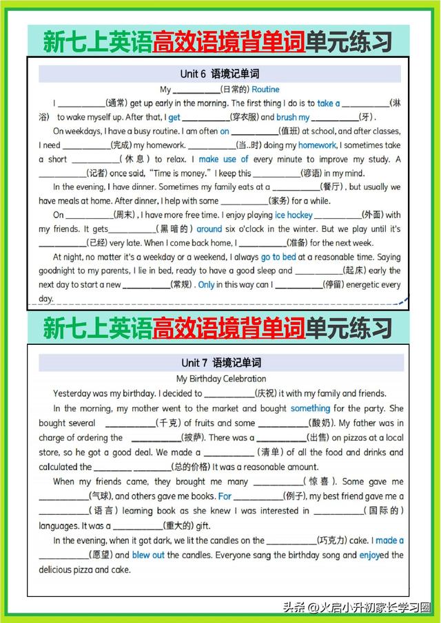 准初一家长进:七年级上册英语期末复习高效语境背单词‼️