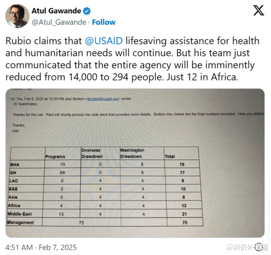 当地时间2月6日,美国国务卿Marco Rubio宣布,美国国际开发署(USAID)将进行大规模裁员,原本的14000名工作人员,将裁至294人。此举意味着该机构近乎被解散。