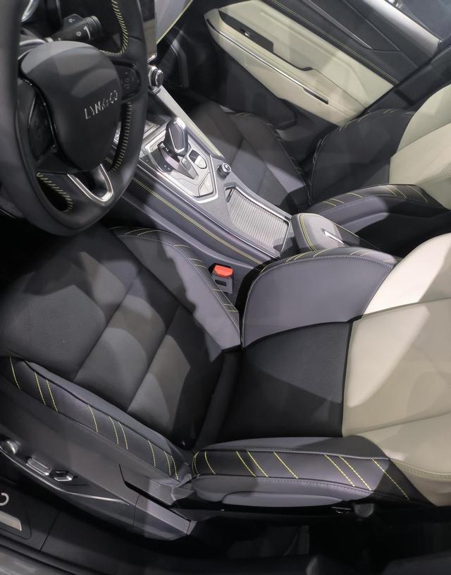 进入领克05车内,内饰设计出众。出风口置顶,中控台缝线配软皮包裹,四幅方向盘握感适中;空调旋钮调节便利。扶手箱、车门内饰板覆以绒布,内饰用料考究。
