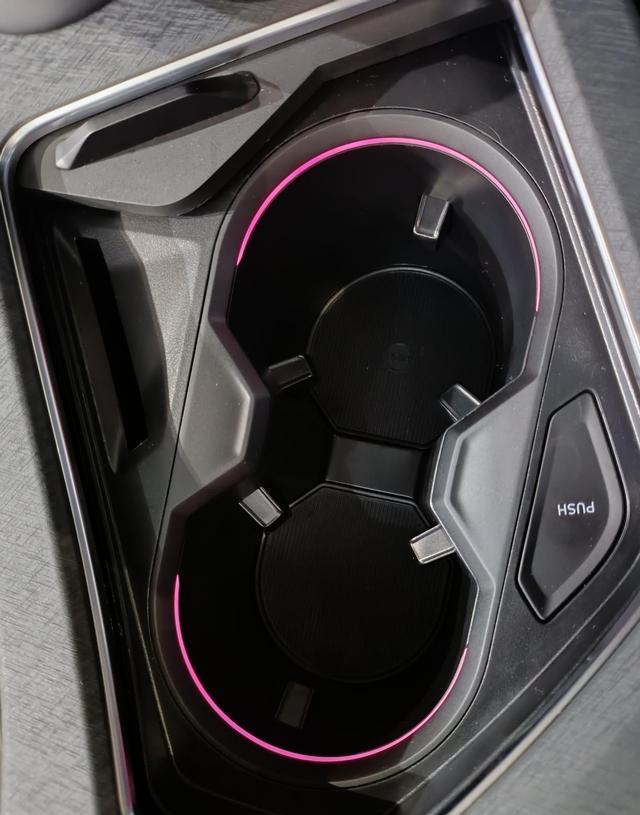 领克05水杯槽融入氛围灯设计,此细节增强了内饰的整体质感,值得注意。