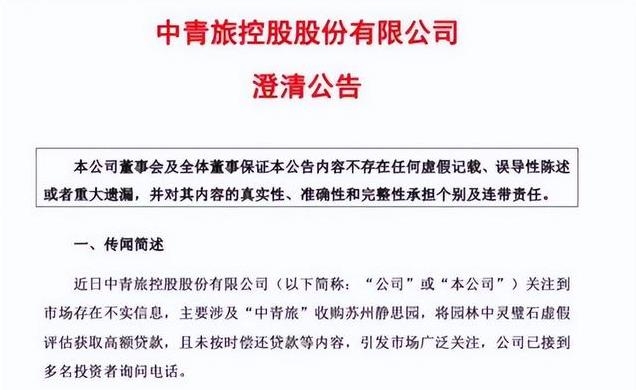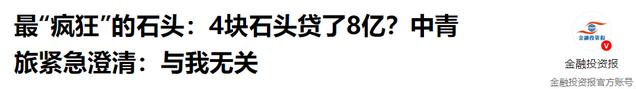 《最“疯狂”的石头:4块石头贷了8亿?中青旅紧急澄清:与我无关》金融投资报2023-06-01