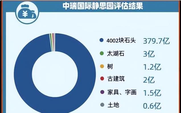 评估结果显示,院内4002块石头估值379.7亿元,太湖石估值3亿元,树种估值1.2亿元,家具字画估值1.5亿元,总估值比收购价暴涨近200倍。