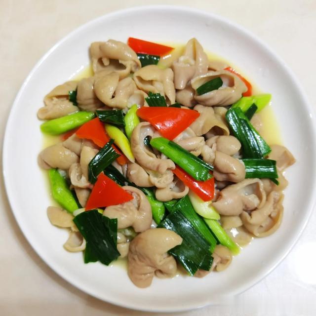 这个肥肠也不错,买回家时已经被清洗干净了,所以没有异味,切成段摸上去很Q弹,吃起来也很有嚼劲,加红椒和蒜苗一顿翻炒,因为少油少盐,所以没有那么油腻,看起来就很清爽,而且颜色也很诱人,让人觉得开胃。