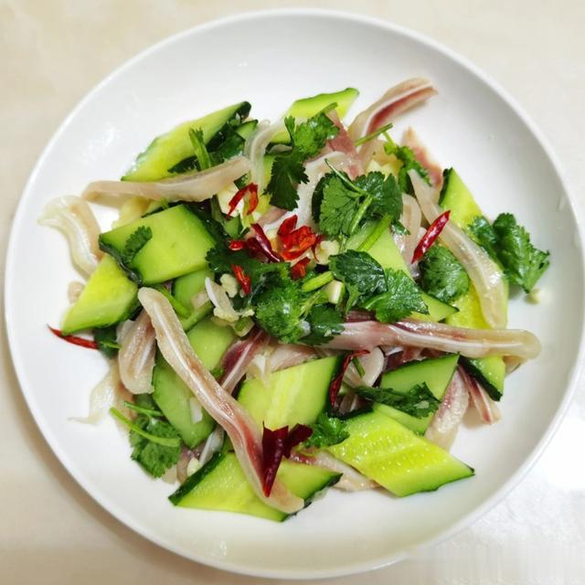 方雅薇自己做的凉拌猪耳朵看着也很美味,猪耳朵切成片,每一片都带着脆骨,所以脆脆的口感很好,应该是白卤,所以颜色白白净净没有那么深沉,这种猪耳朵没有多余的香料搭配,吃的就是本身的肉香味,搭配脆脆的黄瓜片不仅口感更好,而且清淡解腻,可以说比一般的卤猪耳朵更健康,对身体好。
