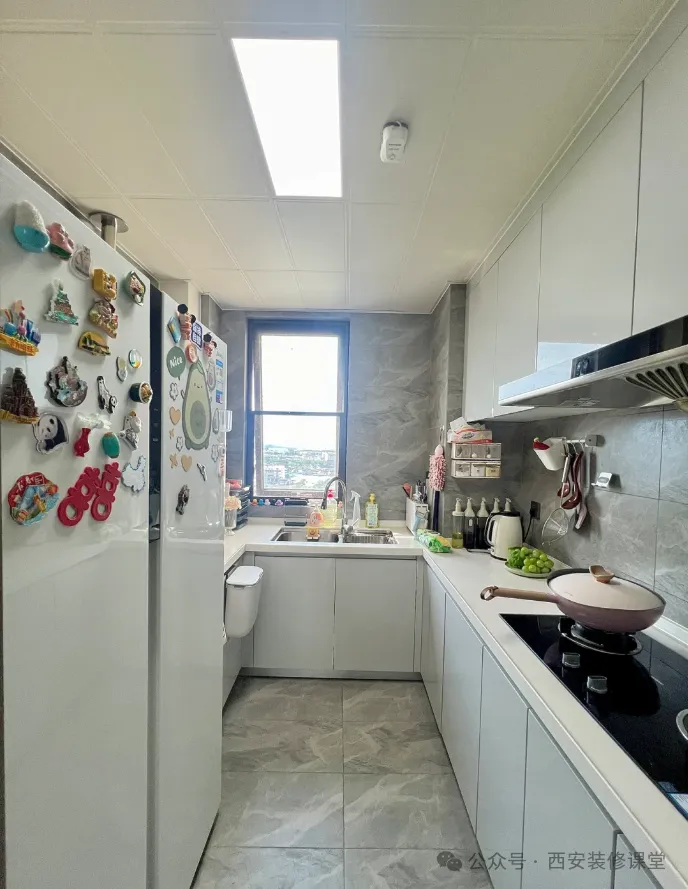 面积130,四室两厅两卫,连廊边户,没砸没拆改造出的精装房;微改基础花了8.5万;