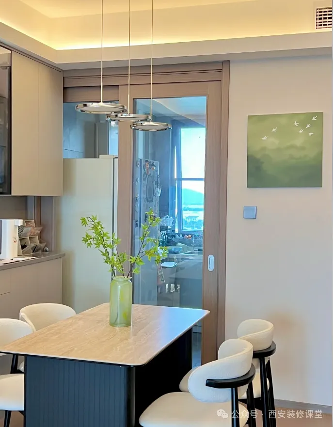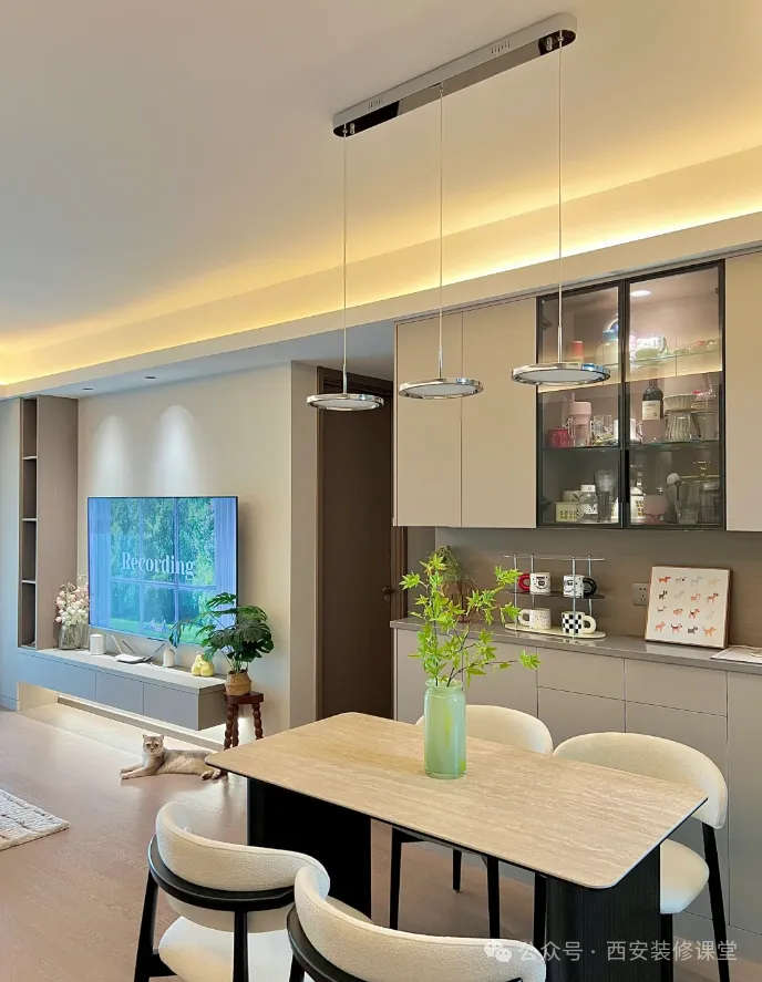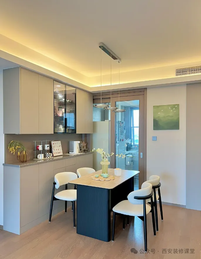 餐厅开间3.6米宽做了一个满墙的餐边柜搭配洞石岩板餐桌太好看了小户型真的不要太适合