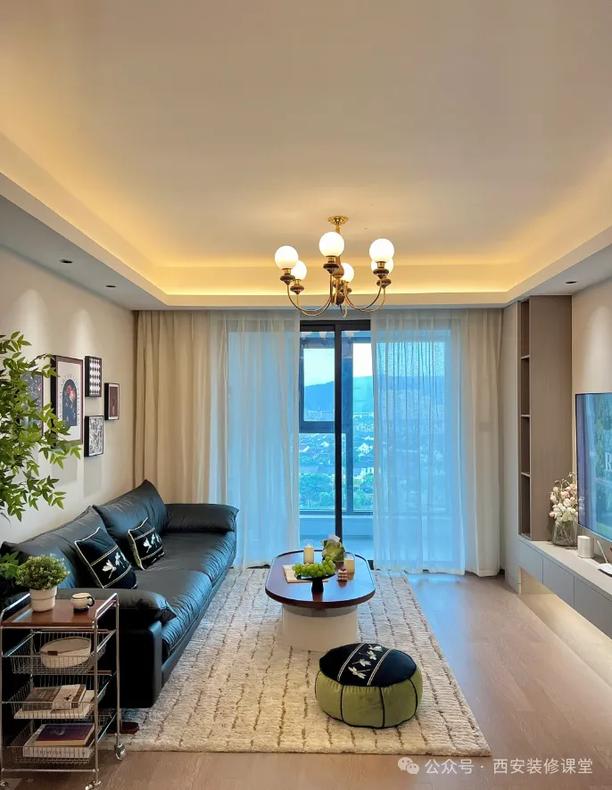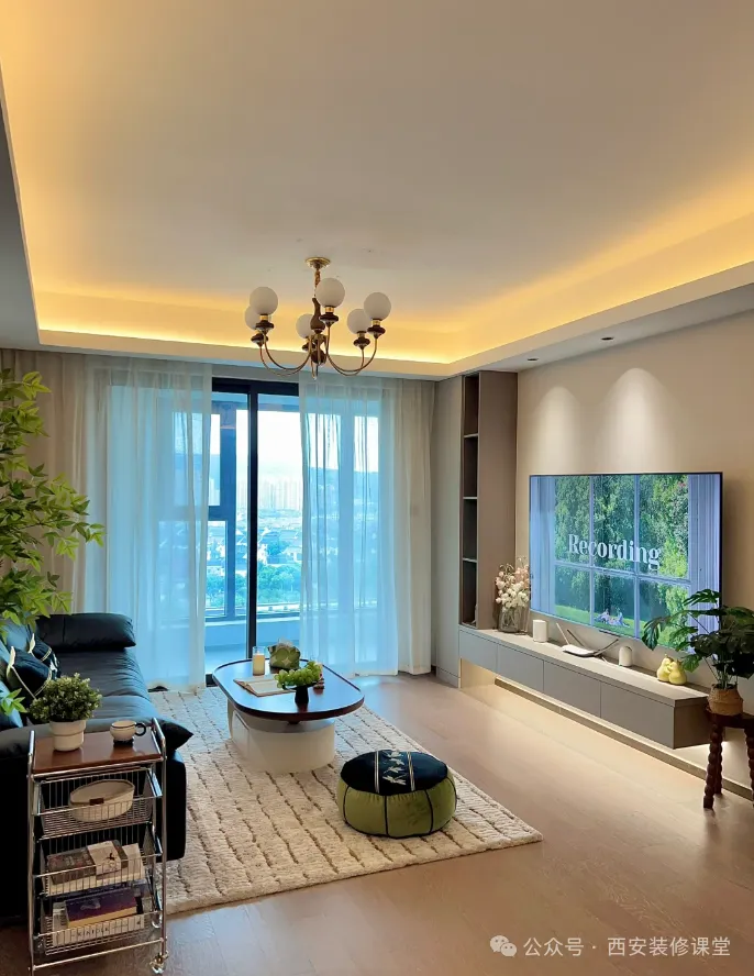 没做复杂的吊顶和电视背景墙也没有阳台通铺,拆掉推拉门不用拆不用砸,省了几十W