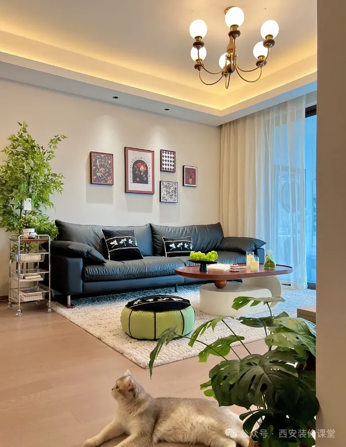 硬装没做什么复杂造型全靠软装拼凑中古风温馨小家客厅选了真皮沙发,不仅好看,舒适度和实用性超高