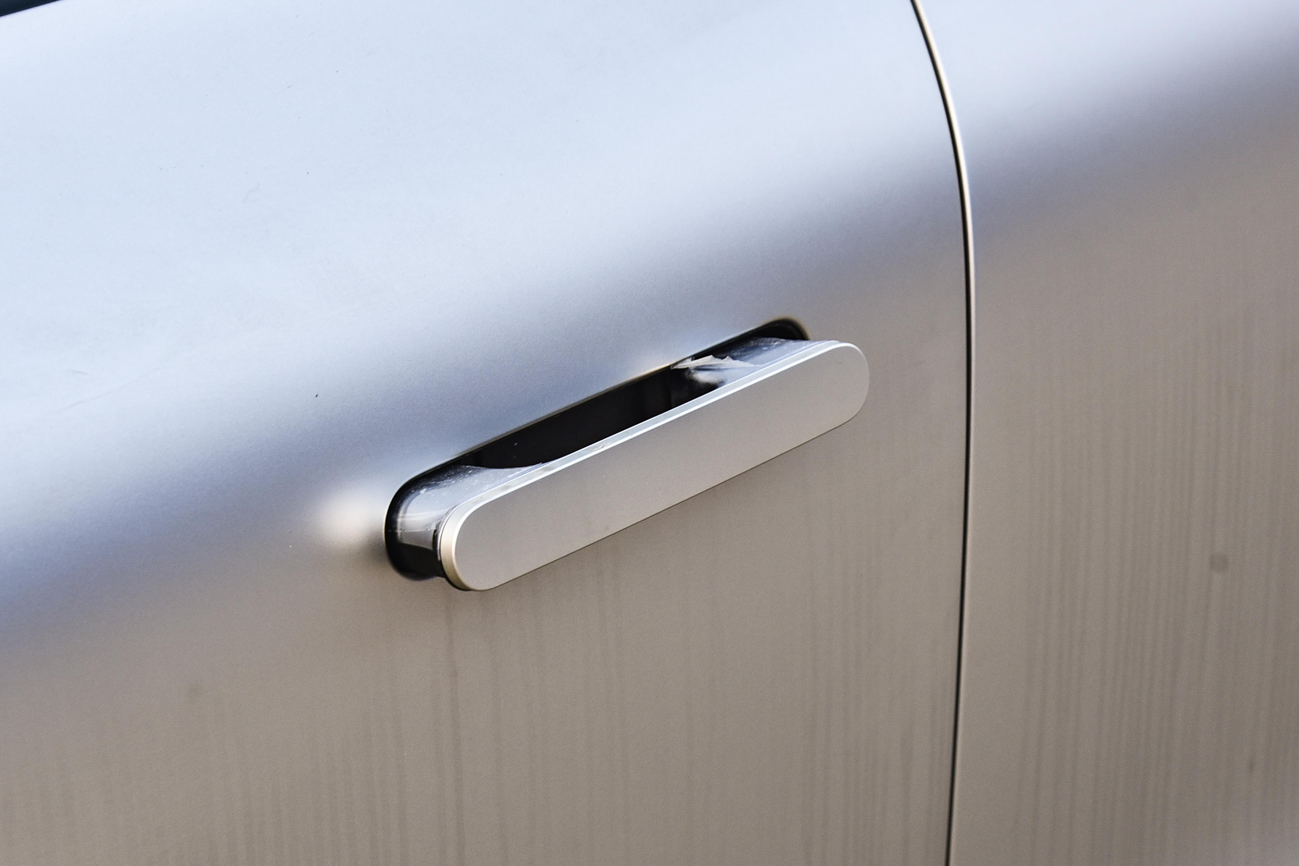 来到车身侧面,享界S9的长5160mm、宽1987mm、高1486mm、轴距3050mm,宽阔的车身侧面还有隐藏式门把手的标配支持,这原本就在新能源市场中得到了广泛应用,如今适配大面积车身展示融合,通过门把手闭合的整洁设计,更好地展示出车身的流畅性。其余的立体变化等元素痕迹较淡,更能凸显门把手闭合的效果优势。另外,以电驱设备控制门把手弹出,在使用效果与灵活性方面更具表现力,而且也让上车变得更有仪式感。