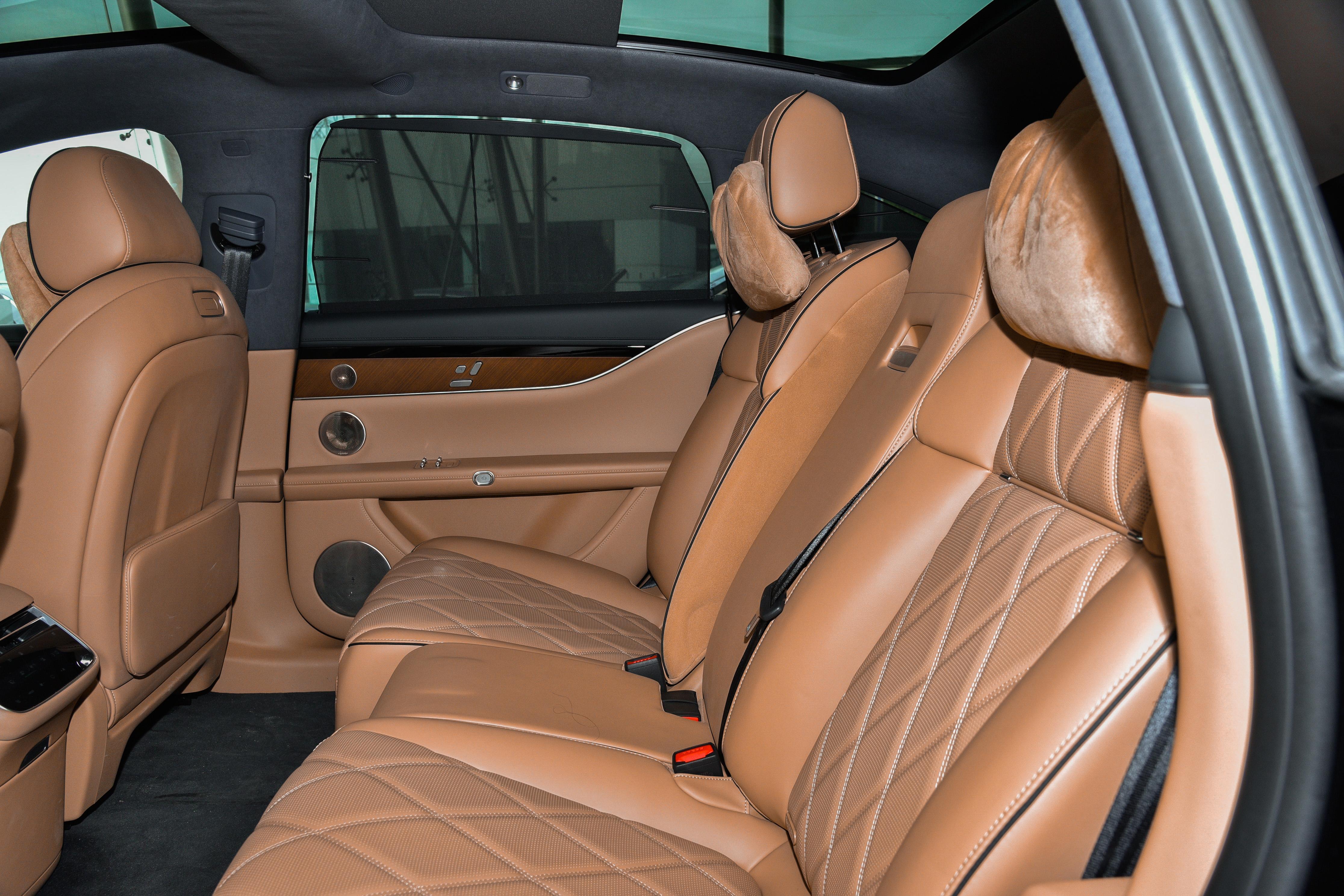 再看车尾部分,享界S9的尾部设计复刻前脸的布局类型,以横贯尾灯为核心,下层逐步向外凸出,并通过尾部的整体上抬设计支持,提供了更好的薄化修饰效果,在原有的沉稳风主调上,加入了更多动感化色彩。
