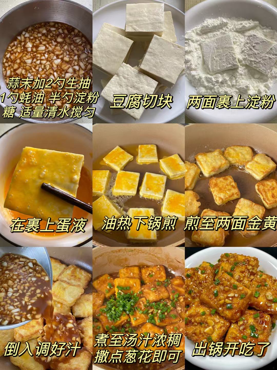 香煎脆皮豆腐是一道经典家常美食,以其金黄酥脆的外皮和嫩滑细腻的内里而备受喜爱。其: