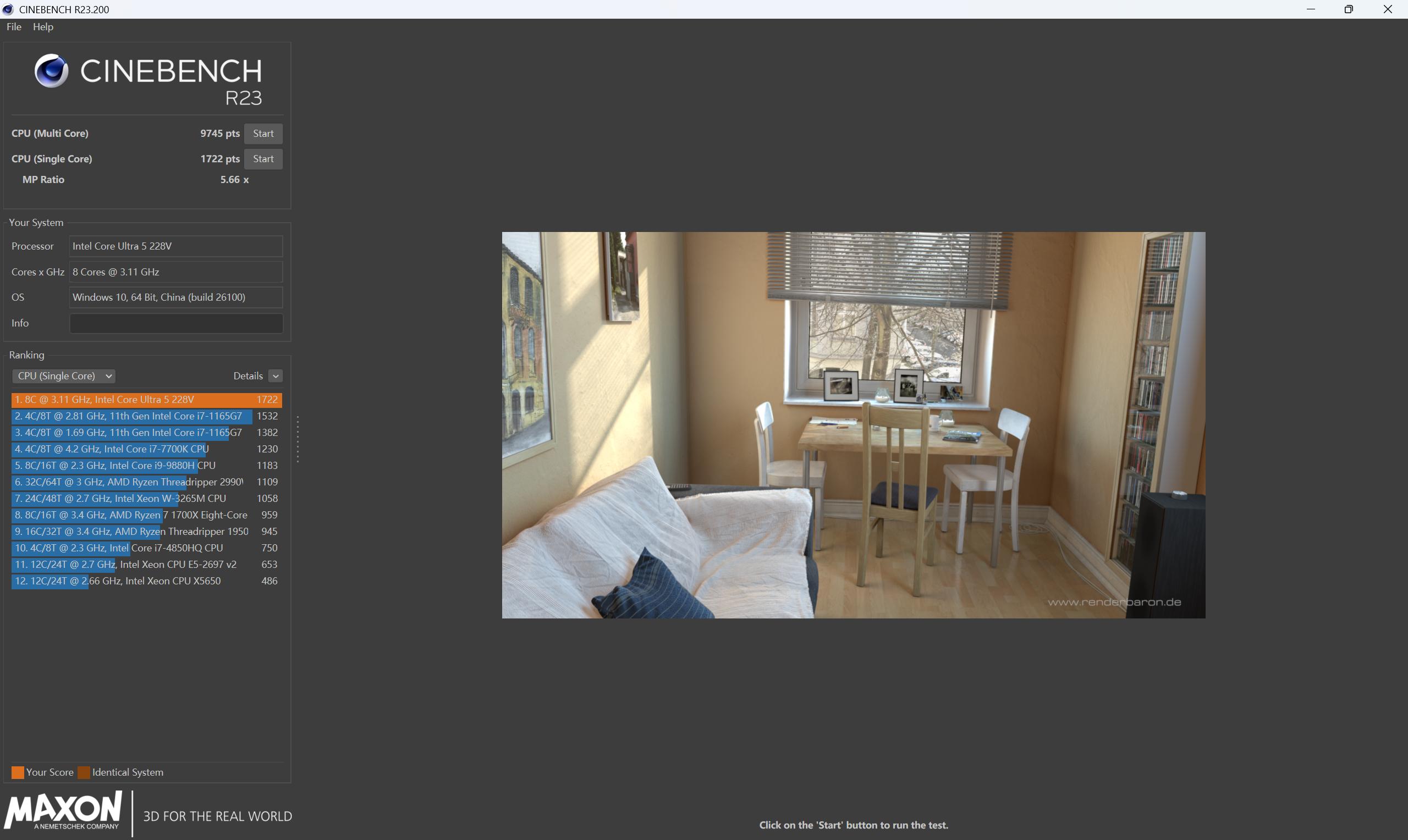 Cinebench R23的处理器运算能力测试中,华硕破晓6 Pro所搭载的英特尔酷睿Ultra 5 228V处理器多线程9745 pts,单线程1722 pts,测试结果比我的预期好多一些,单线程测试的优异表现对我这种经常使用PS的用户来说是个好消息,应对文档编辑多任务并行更能游刃有余。
