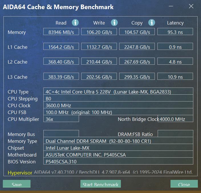 8533MHz高频LPDDR5X的内存性能果然恐怖,读取速83946MB/s,写入速度达到106.2GB/s,文件写入速度104GB/s,延迟95.3ns。