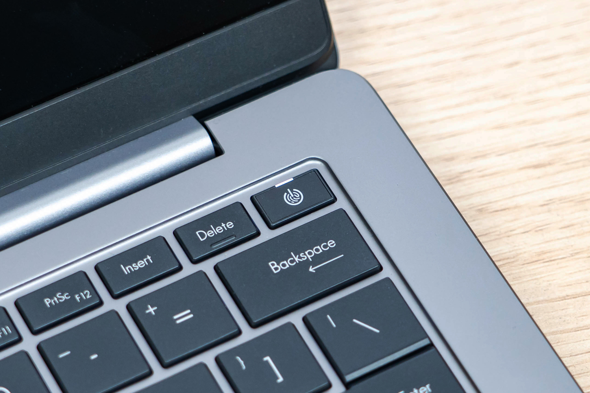 华硕破晓6 Pro采用的是全尺寸商用键盘,字母键宽约16mm,键程1.5mm,支持3档白色背光调节,字符透光很柔和,最高亮度也不会刺眼。右上角的开机键加入了指纹识别功能,可以无感开机直接进入系统,省掉了输入密码的步骤。