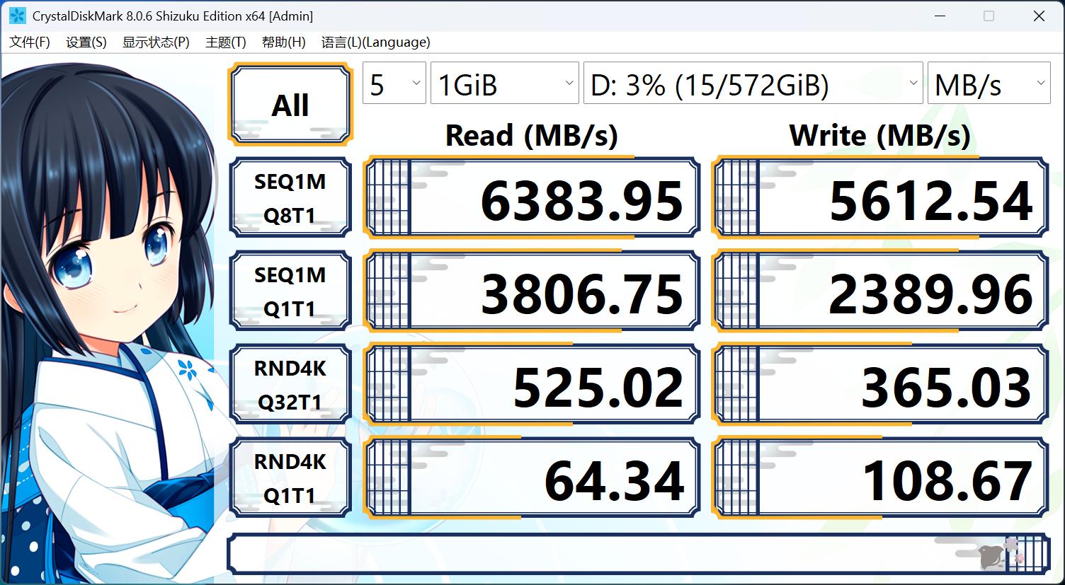 华硕破晓6 Pro的SSD为NVMe 2.0标准、PCIe 4.0x4传输协议,CrystalDiskMark测试连续读取与写入速度分别是6383 Mb/s和5612 MB/s,PCIe 4.0 SSD的读写性能直接拉满。