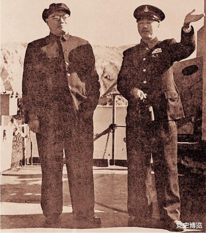 1953年,刘伯承在大连视察海军舰艇。右为刘华清