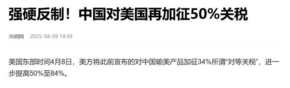 2025年4月9日,中国正式宣布,将原产于美国的所有进口商品加征关税税率从34%飙升至84%,作为对美方此前单边行动的强硬反制。这一针锋相对的举措,让中美贸易摩擦的火药味愈发浓烈。
