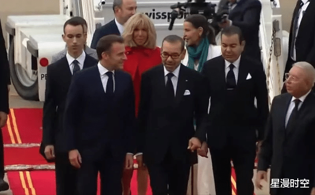 对于马克龙和夫人布丽吉特的到来,摩洛哥王室作为东道主,也是全员出动,去了机场迎接。
