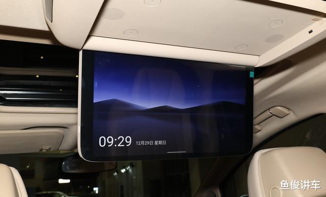 后排还有小桌板、独立空调和15.6英寸的吸顶屏,简直就是个移动影院。