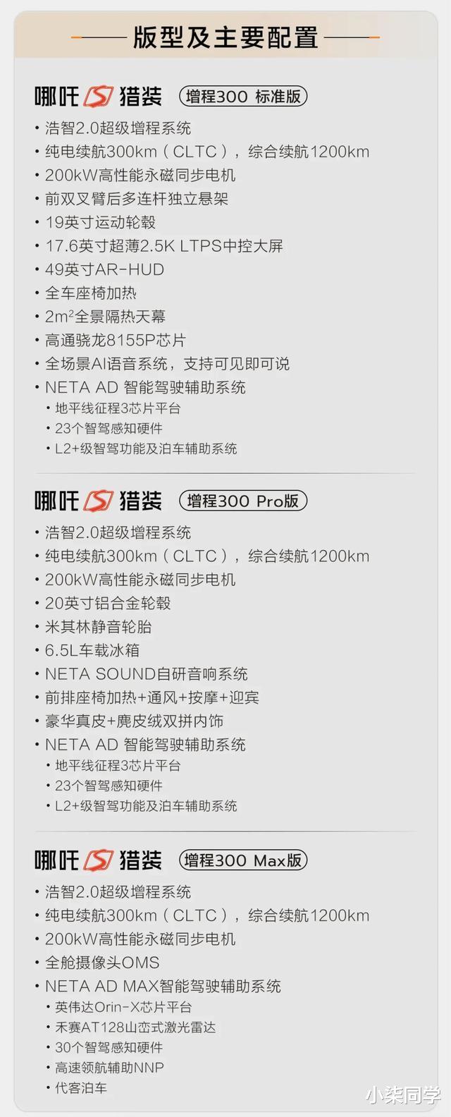 哪吒S猎装增程版主要功能配置信息(可做参考)