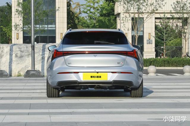 车尾部分,哪吒S猎装增程版同样延续了三厢版哪吒S的设计方案(贯穿式尾灯组、“小鸭尾”造型扰流板、后包围底部熏黑装饰件)。此外,哪吒S猎装增程版采用了电动掀背式尾门设计(便于用户在后备箱放置大件物品;后备厢常规容积为593升,后排座椅放倒后最大可扩展至1295升)。