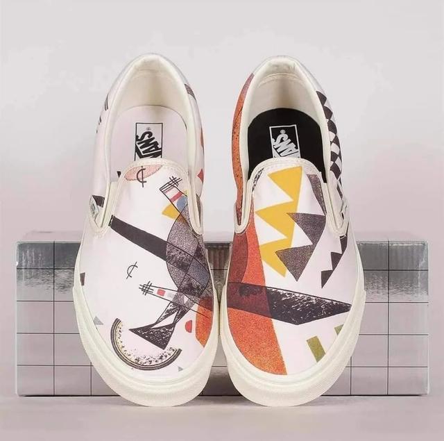 MoMA 作为一家艺术博物馆,一直以来都打造过不少跨界合作。这次与 Vans 的合作便是依照 MoMA 馆藏的一些艺术家画作而推出的,整个系列包含多双不同鞋款和服饰,这双 Slip-On 采用俄罗斯艺术家 Wassily Kandinsky 的抽象画作《Orange》为图案设计,将 Vans 经典的棋盘格图案结合 Kandinsky 的多彩构图,玩转圆形、直线和三角形等几何元素。