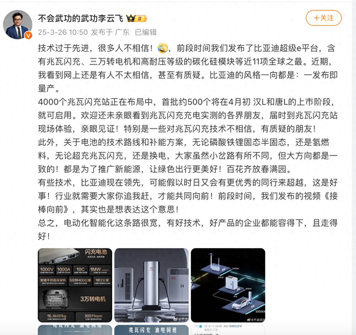 比亚迪近期发布的超级e平台可谓再次刷新行业认知,其搭载的兆瓦闪充、三万转电机以及高耐压碳化硅模块等核心技术,一举创造了多个全球第一。然而,面对如此激进的技术革新,部分网友持怀疑态度,认为这或许只是“PPT技术”。但比亚迪向来以“技术落地”著称,一旦官宣,必然紧随量产。