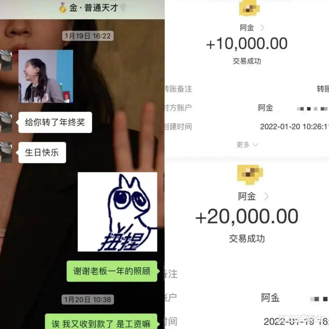 金靖助理晒的截图就是工资和一些年终奖的转账截图,从截图中能看出金靖对待助理还是挺大方的,奖励也是不少。