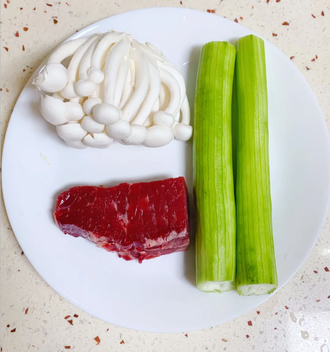 主料:牛肉片200克(建议选择牛里脊,肉质细嫩),丝瓜1根(中等大小),海鲜菇150克。