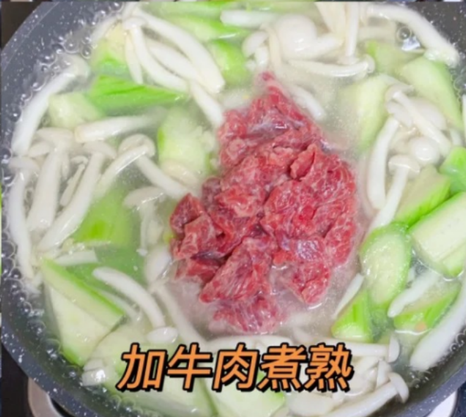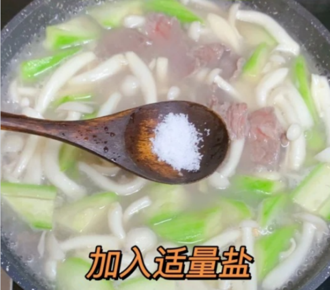 煮开后,根据个人口味加盐调味,撒上葱段,再煮1-2分钟即可关火。此时,海鲜菇的鲜、丝瓜的清、牛肉的香完美融合,汤色清澈透亮,香气扑鼻。