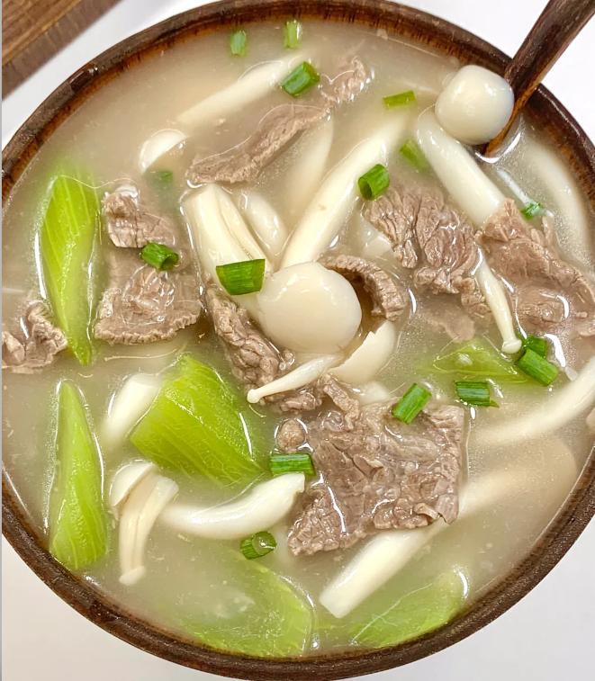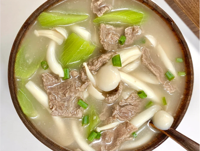 这道海鲜菇丝瓜牛肉汤,第一口下去,首先感受到的是海鲜菇的鲜美,紧接着是丝瓜的清甜,最后是牛肉的嫩滑。三者交织在一起,构成了层次分明又和谐统一的味觉体验。汤色清亮,入口温润,不油腻,非常适合春季饮用,既能滋补身体,又不会给肠胃带来负担。