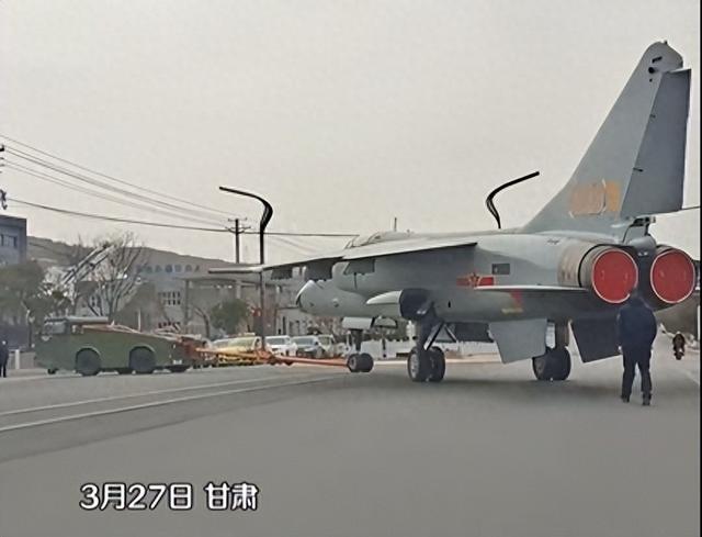 近日,一位甘肃网友偶遇一架歼轰7战机横穿马路,这架飞机的垂尾编号已被遮挡,发动机没有拆下,看起来机况还不错。一般情况下,军用飞机出现在马路上,说明它已经退役了。由于牵引飞机的是场内专用牵引车,跑不了太远,因此这架飞豹可能只是被运到附近的爱国主义教育基地。