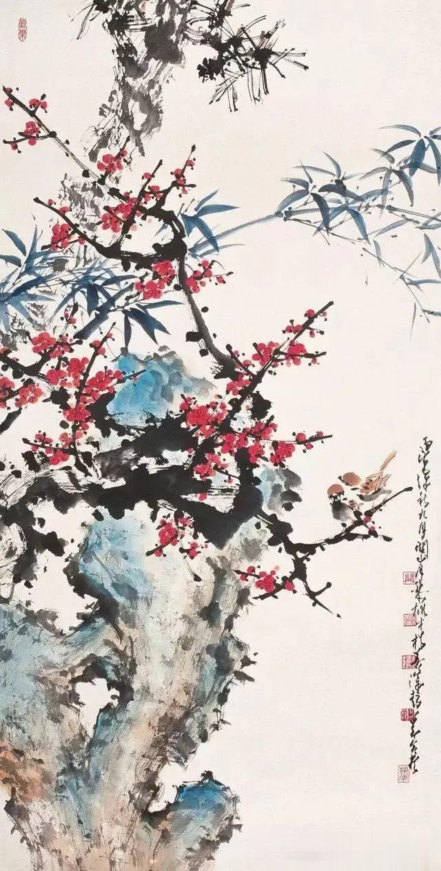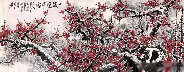 关山月,原名关泽霈(1912年-2000年)。以山水画闻名于世,坚持岭南派革新主张,其画立意高远,境界恢宏。晚年喜作梅花,铁干繁花,有雄浑厚重之意。巨幅设色山水画《江山如此多娇》就由傅抱石和关山月于1959年合作创作,收藏于北京人民大会堂。该画以毛泽东《沁园春·雪》词意为题材,描绘的是云开雪霁、旭日东升时,莽莽神州大地“红装素裹,分外妖娆”的美丽图景,画中高山大岭,白雪皑皑,万里长城,逶迤起伏,莽莽黄河,奔流不息,气象万千。