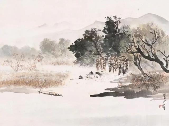 虽然也很欣赏那些意境十分开阔壮丽的山水画,私以为同时也很符合李白的诗作《关山月》中描述的“明月出天山,苍茫云海间。长风几万里,吹度玉门关。”这句诗的感觉,但是我也很喜欢他的一些山水人家的作品,这样的生活显得宁静悠远,虽没有那么震撼,但是这样的小桥流水也别有一番风味。