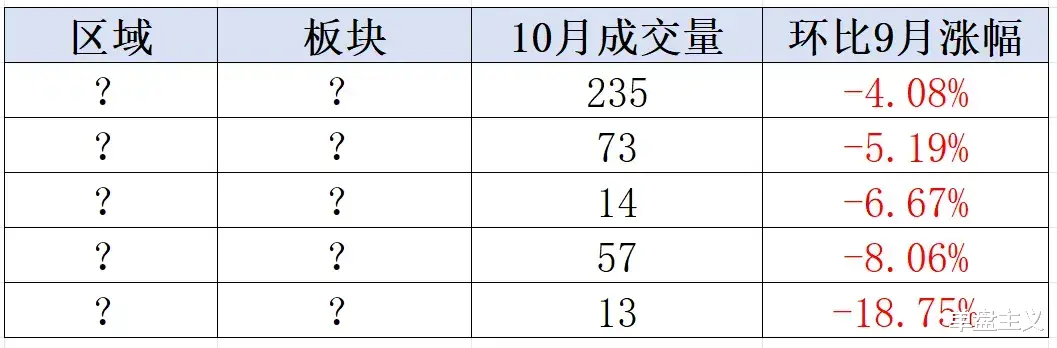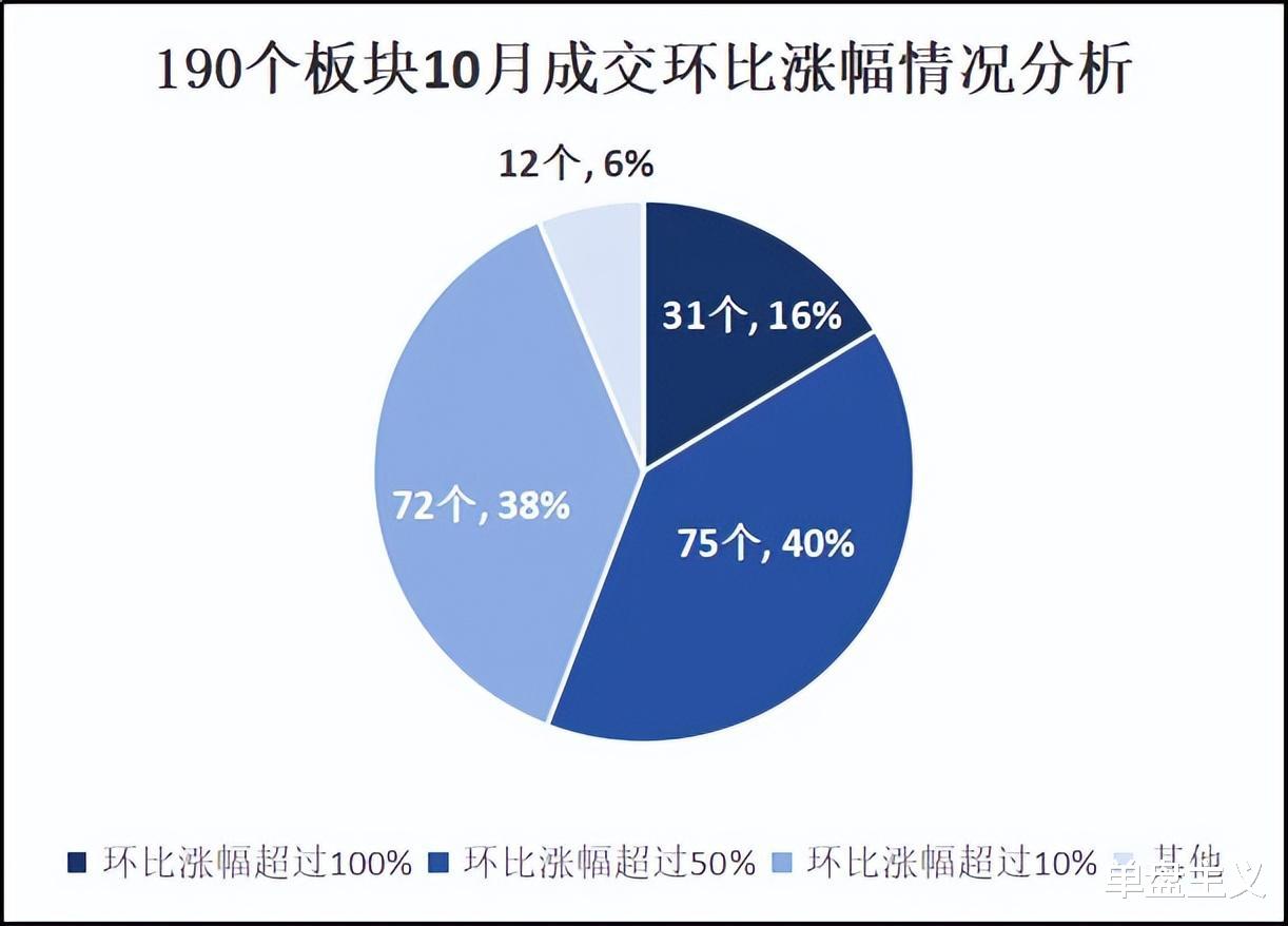 为了防止单套数据波动引起的环比涨幅失真,我们把十月成交套数低于十套的板块剔除,剩余190个板块