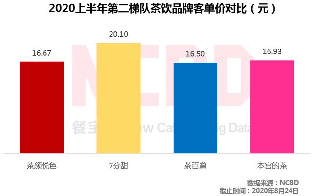 从客单价来看,7分甜的客单价在茶饮第二梯队中最高,超过20元;