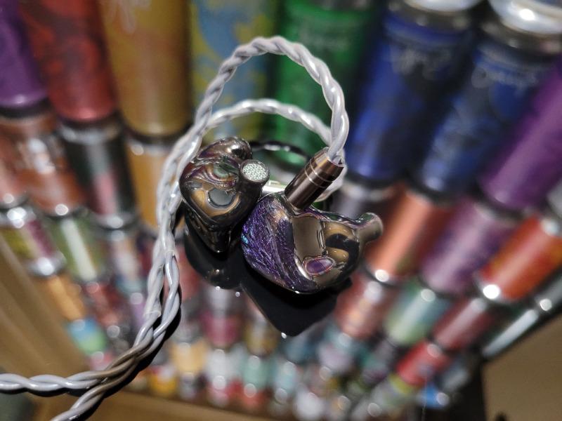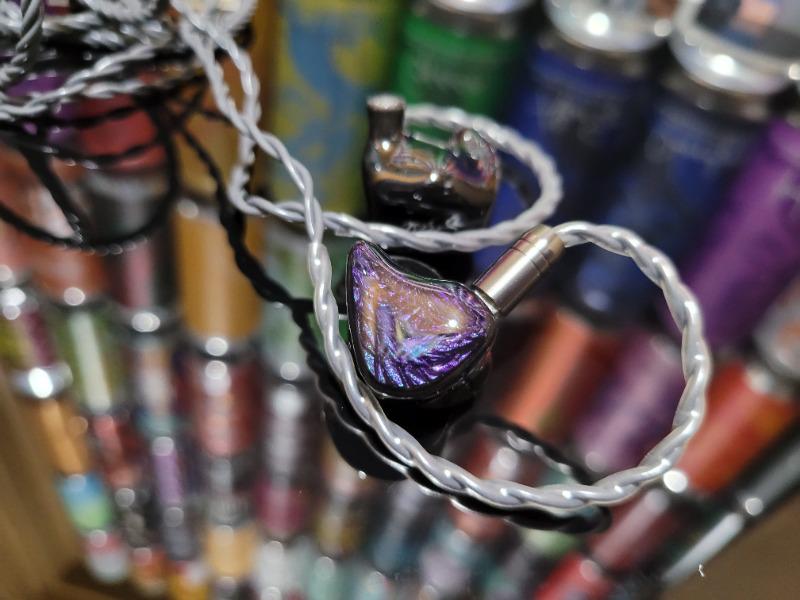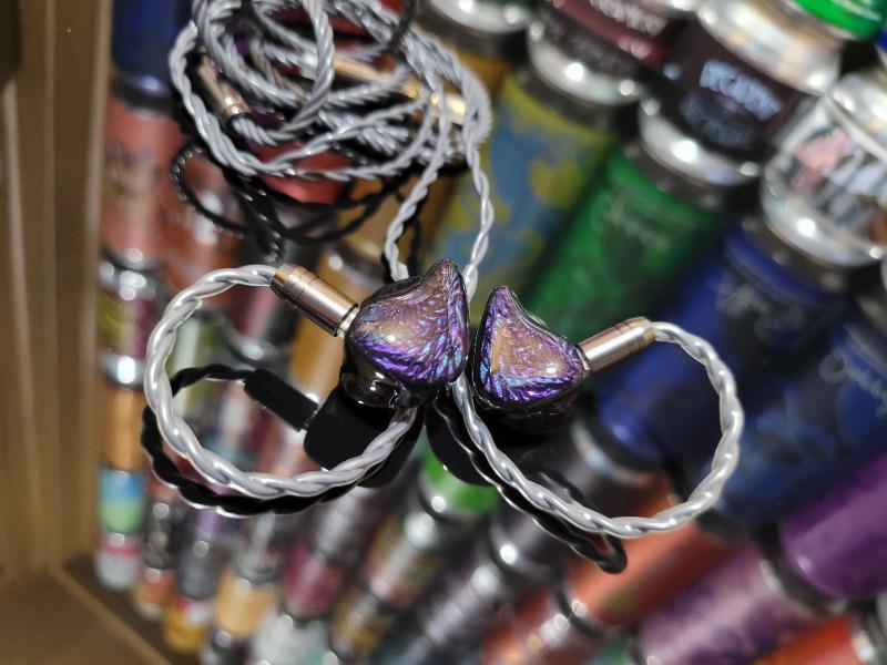 耳机腔体的面板是最为吸睛,设计感满满,像是龙的鳞片状,规则排布的同时,在不同的光照条件下,呈现不同颜色和亮度,相当精美华丽,紫、蓝、黑的搭配,渐变效果,光影交错,也是增加了一丝神秘感。审美的东西各花入各眼,我只能评价基于我个人的喜好而言,我觉得一两百的耳塞有这种颜值,还是相当诚意。