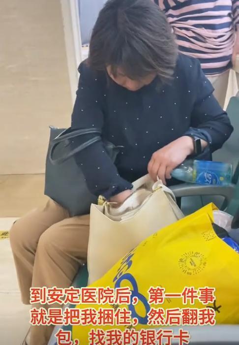 而她的母亲对此却冷眼旁观,只顾着翻包找博主的银行卡。