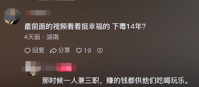 博主回复道“当时一个人做三份兼职,挣的钱全部供他们吃喝玩乐”。