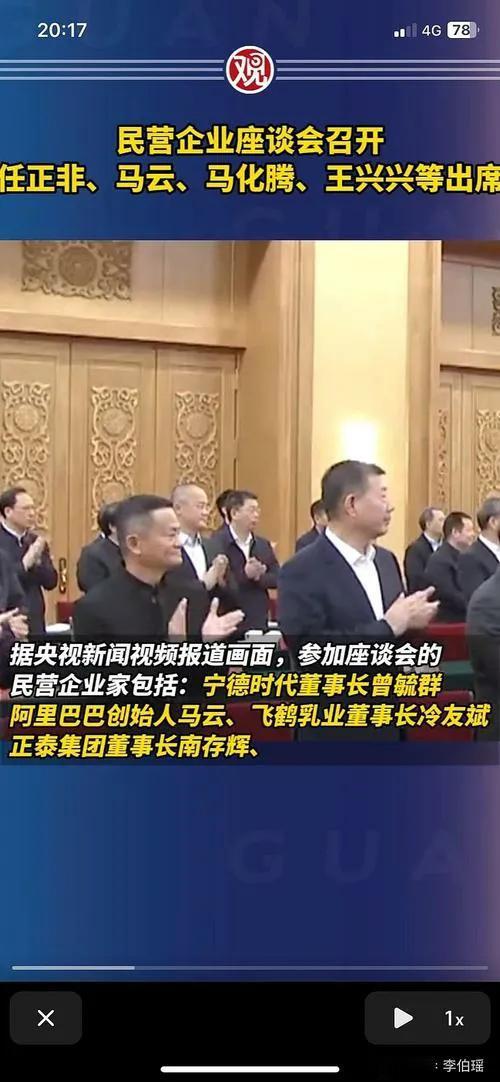 好久没有露面的马云这次应邀出席,表明了国家对民营企业家一以贯之的关心、重视和支持,充分肯定了民营经济的重要地位和作用。