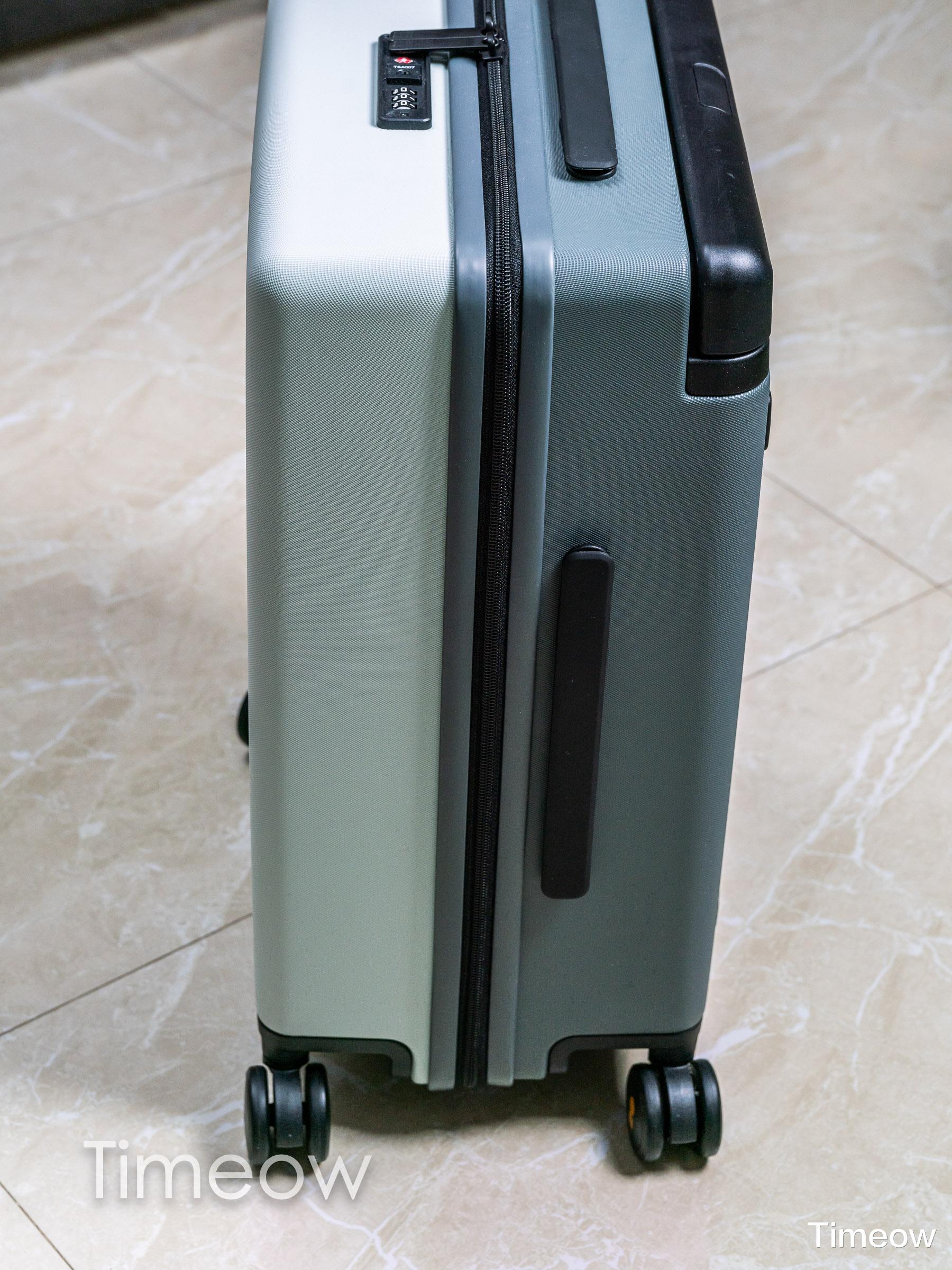 它整体透露出了一股清新气息,深浅两种抹茶色的对撞也让它显得不单调。对于我来说,不仅让我这30多的人更显年轻、还能让我在一众的箱子里认出它。而且我老婆也说了,这个配色是真的好看!