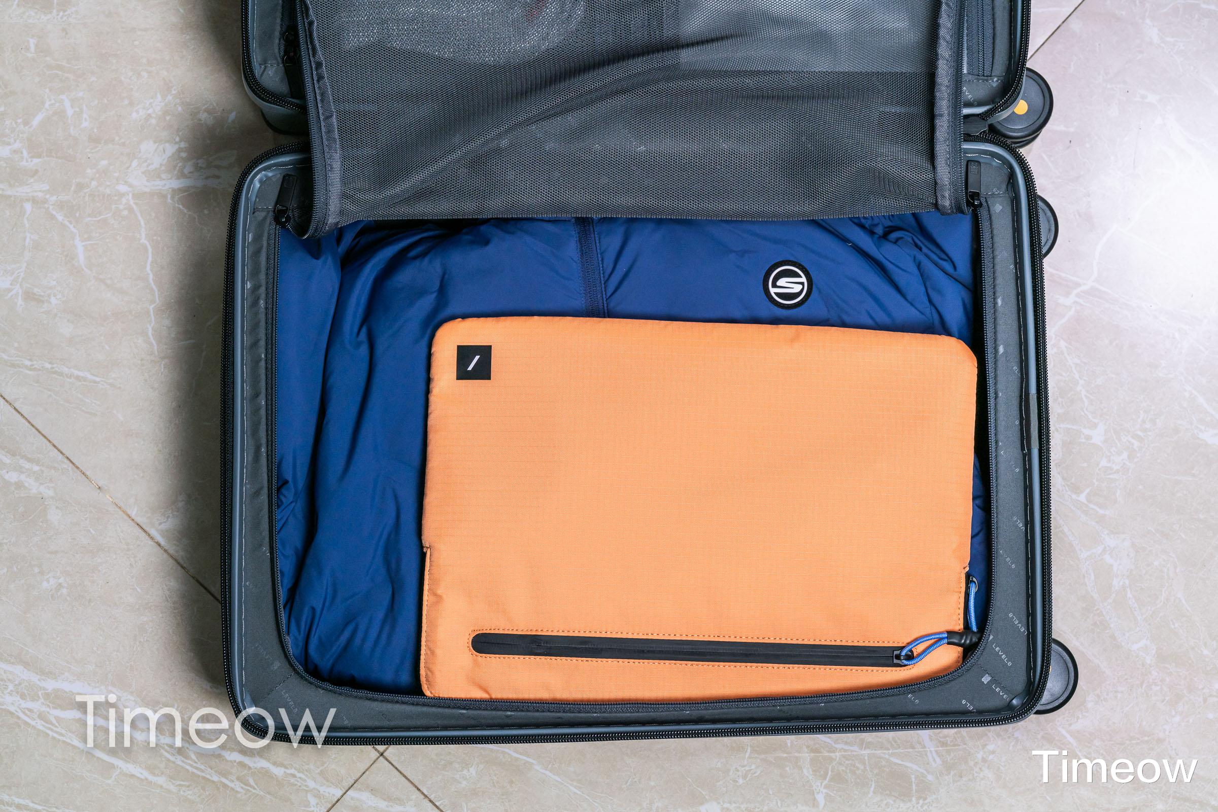 另外一侧一件厚实的羽绒衣和笔记本电脑,再加上一些电子设备、洗漱套装也是毫无压力的。